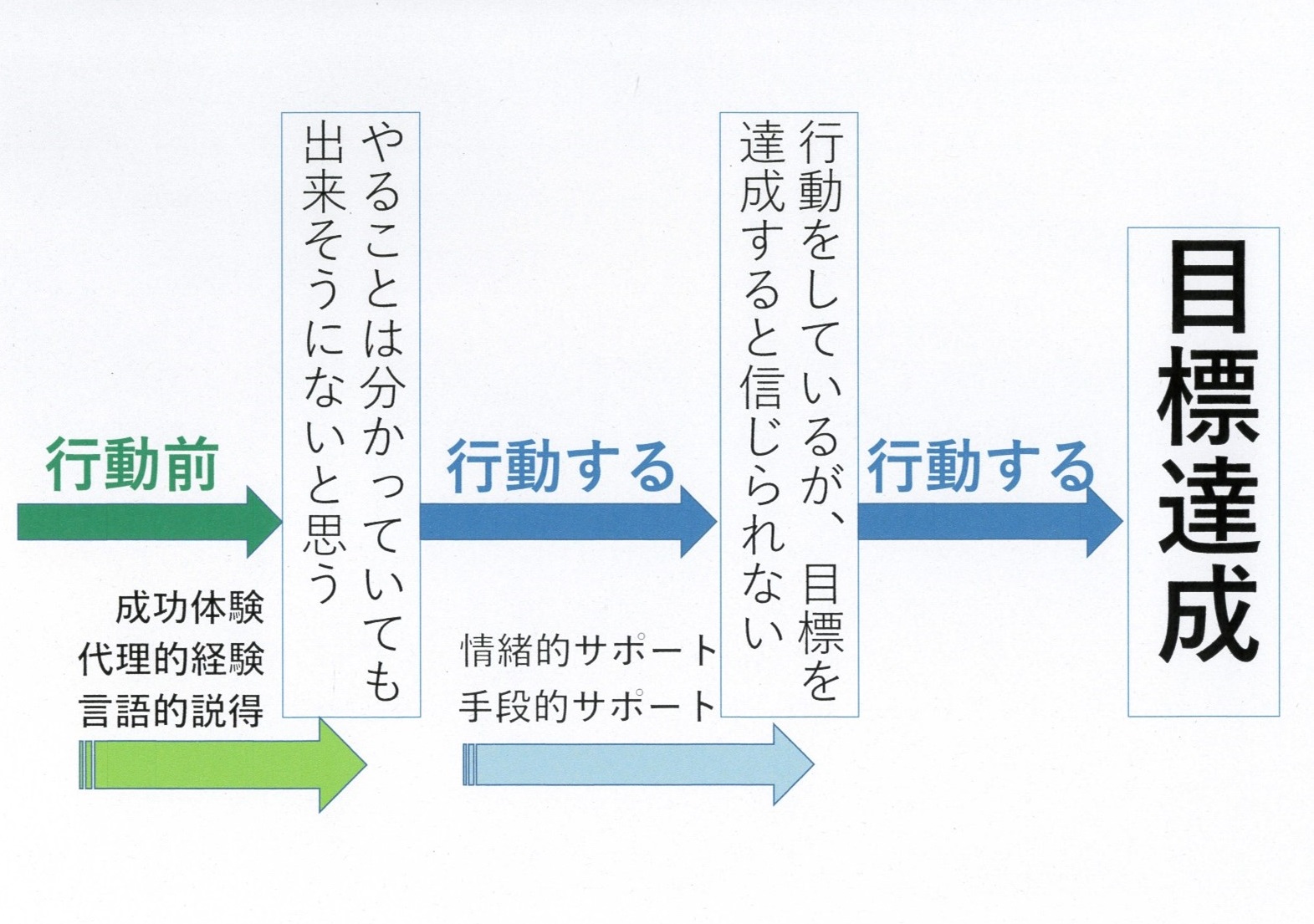 何をやるのかがわかっていて、目標を達成するまでには、行動を止めてしまう2つの壁が存在します。1つめの壁は行動を起こせないこと。この壁を超えるには、「自分でも出来そうだ」と思えることが重要です。過去の成功体験や、あの人が出来ているから、きっと自分も出来るという代理体験、納得がいくまで説明を受けるなどが有効です。
