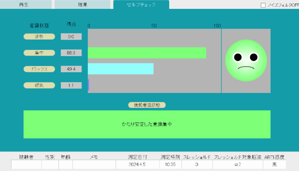 3分間目を閉じてリラックスしているはずなのに、リラック以外の様々な脳波出るのは不思議ですね。